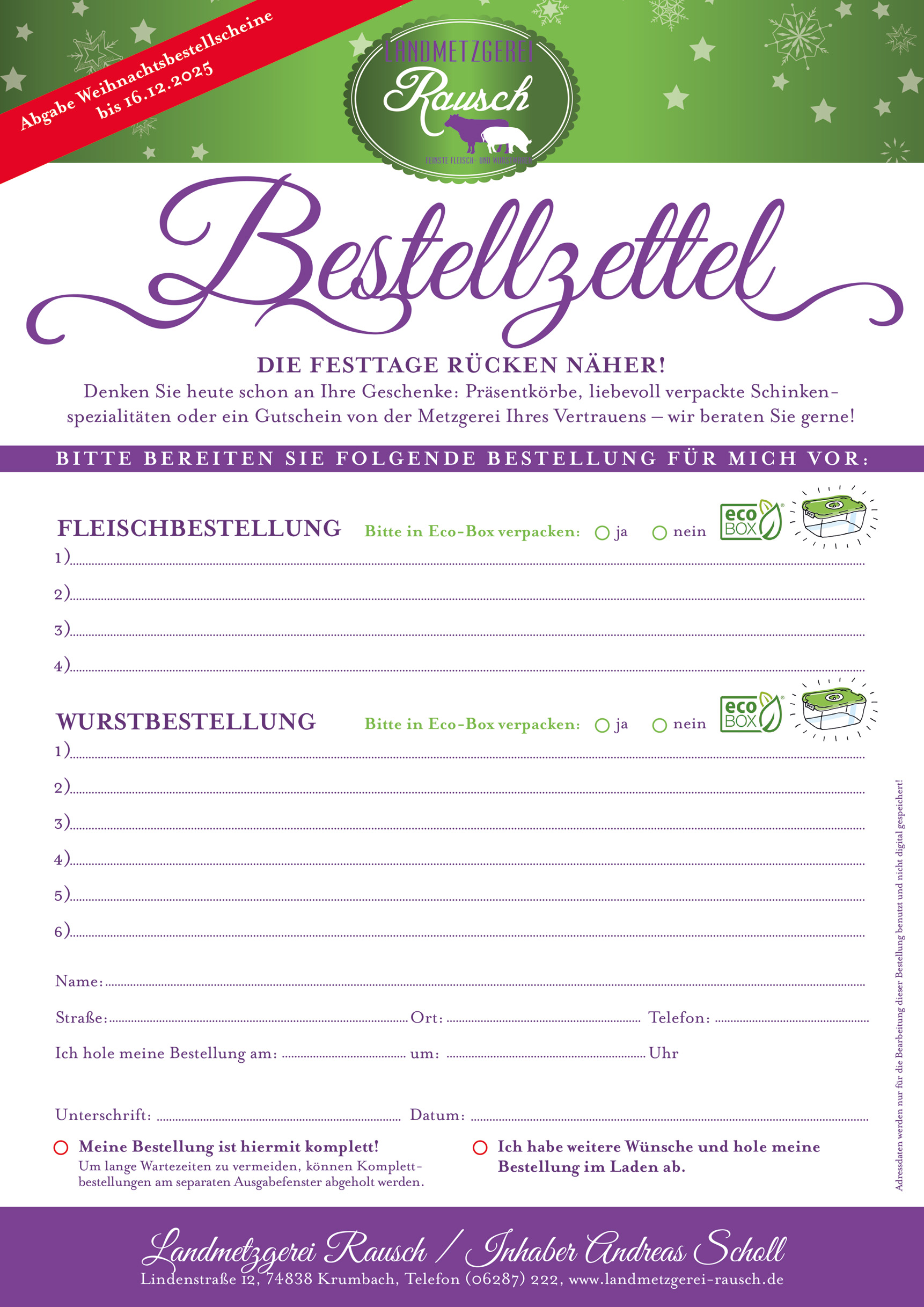 Ihre Landmetzgerei Rausch wünscht Ihnen viel Spaß auf unserer Seite